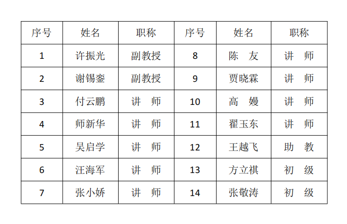 学院除专职教师外,还聘任学校相关部门的管理干部和辅导员作为兼职教师,面向全校学生授课。(按职称和姓氏笔画排序)